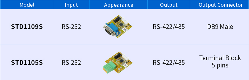 The STD1109S / STD1105S are compact internal modules that convert onboard RS-232 signals to RS-422 or RS-485. They can be installed directly inside the chassis to enable stable long-distance and multi-drop serial communication, while keeping the original RS-232 port available and reducing the number of motherboard SKUs required.